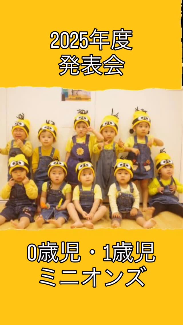 かわいいミニオンズ🍌 2025年度0歳児,1歳児発表会✨ たくさんの人の前でステージに立ってがんばりました🥰 立ってるだけでかわいいね💕 #うるま市保育園 #うるま市 #沖縄保育園 #発表会 #ミニオンコーデ